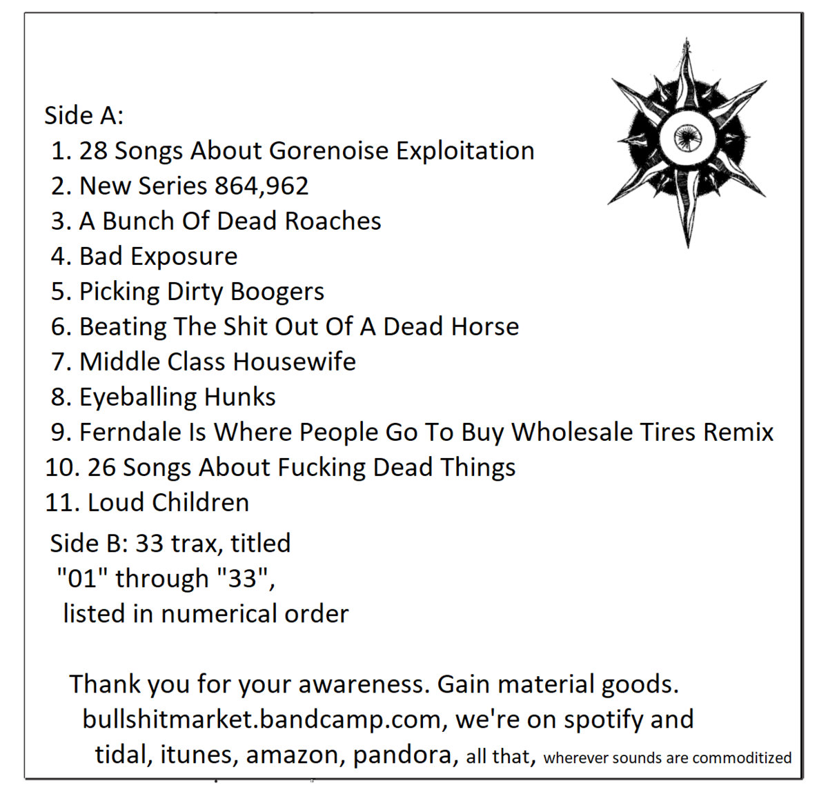 2005 ~ infinity. Detroit cassette tapes. Partnered with Sweet Briar Tapes. Hip-Hop and Noisecore. Boutique and important things.